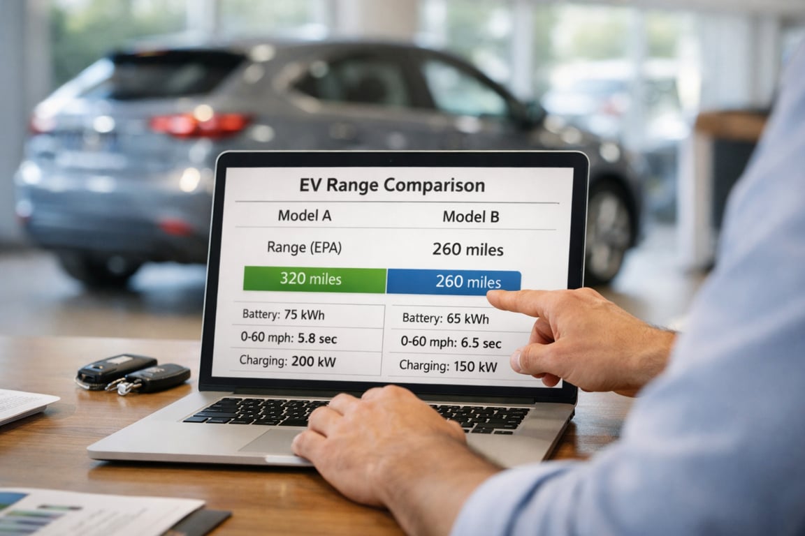 Vraag naar bereik onder stads- en snelwegcondities, laat realtime verbruiksgegevens zien op boordcomputer of app en vraag naar schriftelijke uitleg van de garantie en degradatievoorwaarden.