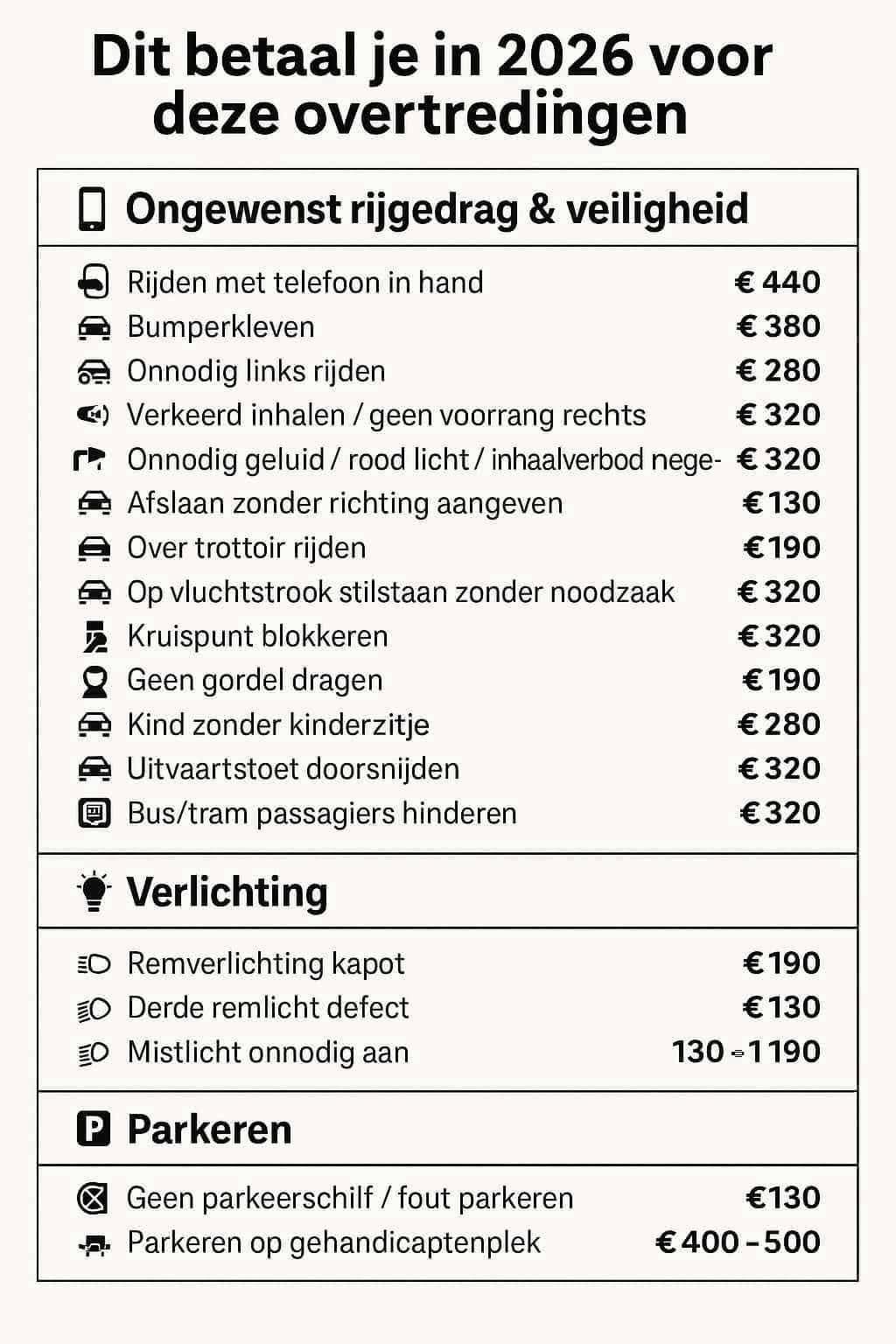 Rijd je rustig en alert, dan blijft je portemonnee dicht. Maar een moment van afleiding of koppigheid kan in 2026 net iets duurder uitpakken dan je gewend bent.