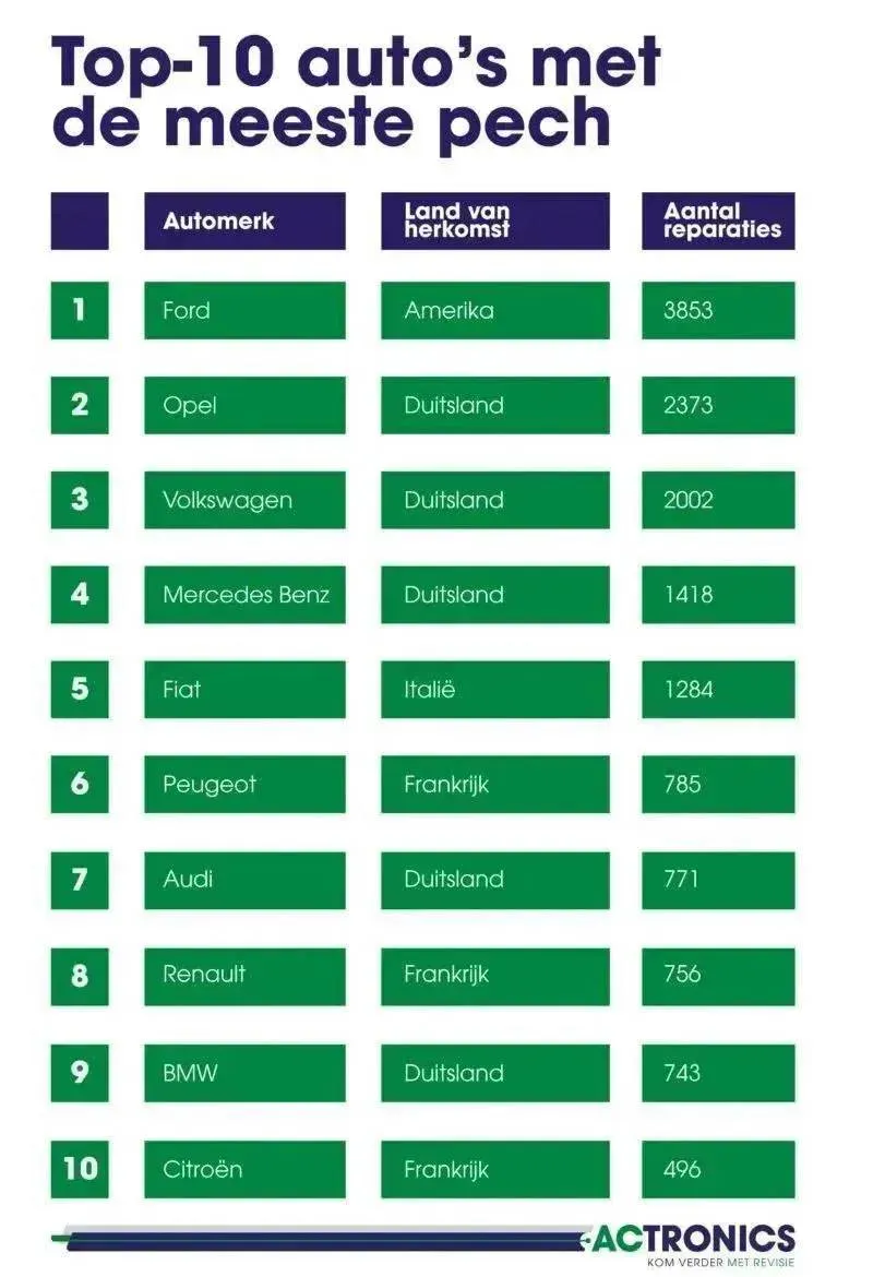 De data maakt duidelijk dat populaire merken zoals Ford en Opel, en verrassend genoeg ook bepaalde Duitse types, vaker terugkeren naar de werkplaats. Dat hoeft geen afknapper te zijn, maar het vraagt wel om scherpere keuzes bij aanschaf en onderhoud.