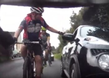 ZIEN: wielrenner grijpt autospiegel en krijgt direct reactie van automobilist