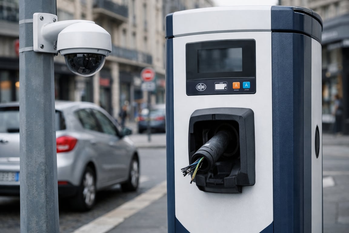Let op losse of slecht bevestigde kabels, ontbrekende vergrendelingen en slechte verlichting. Een paal zonder camera of met zichtbare schade is vaak een hoger risico.